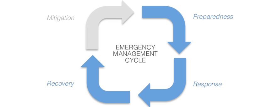 Overall the four phases of emergency management work together to minimize the impact of an emergency on people, property and infrastructure and ensure that affected communities can recover and return to normal as quickly as possible.