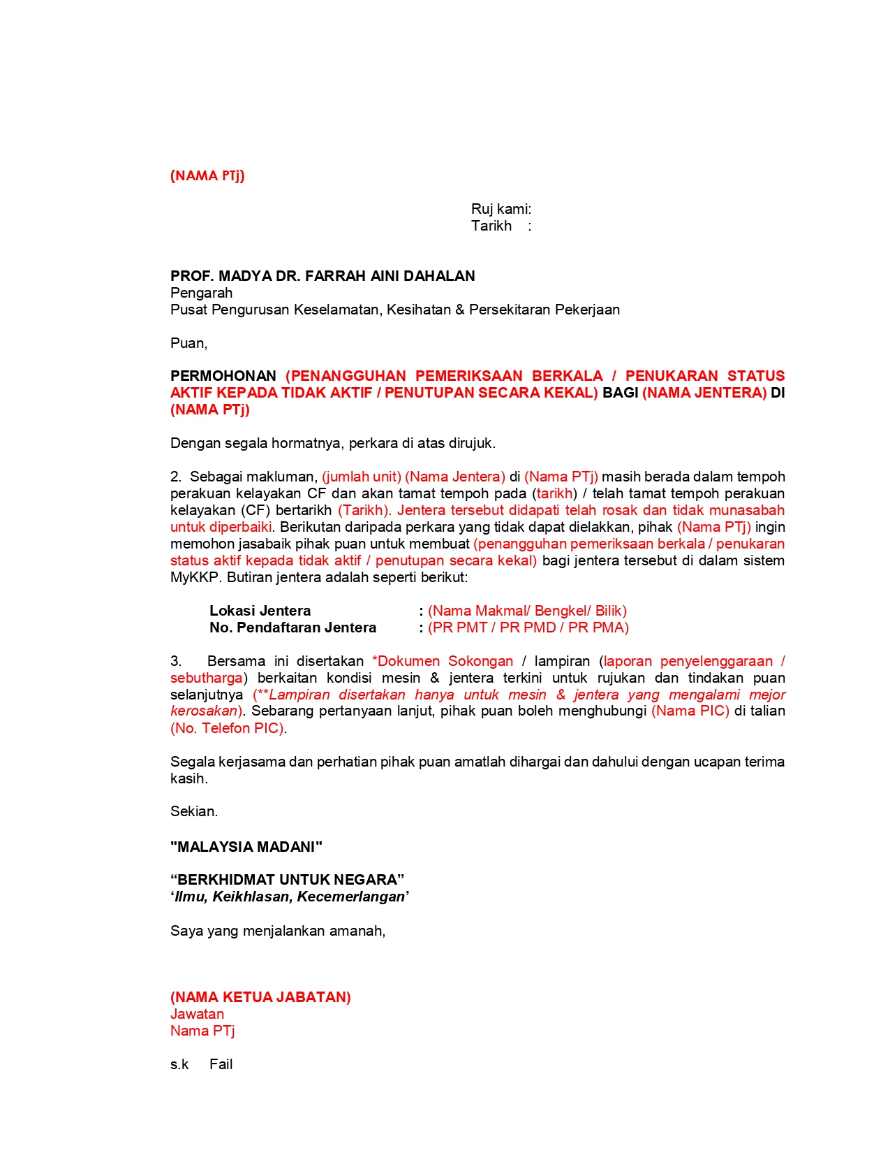 muat turun contoh surat permohonan penukaran status mesin & jentera